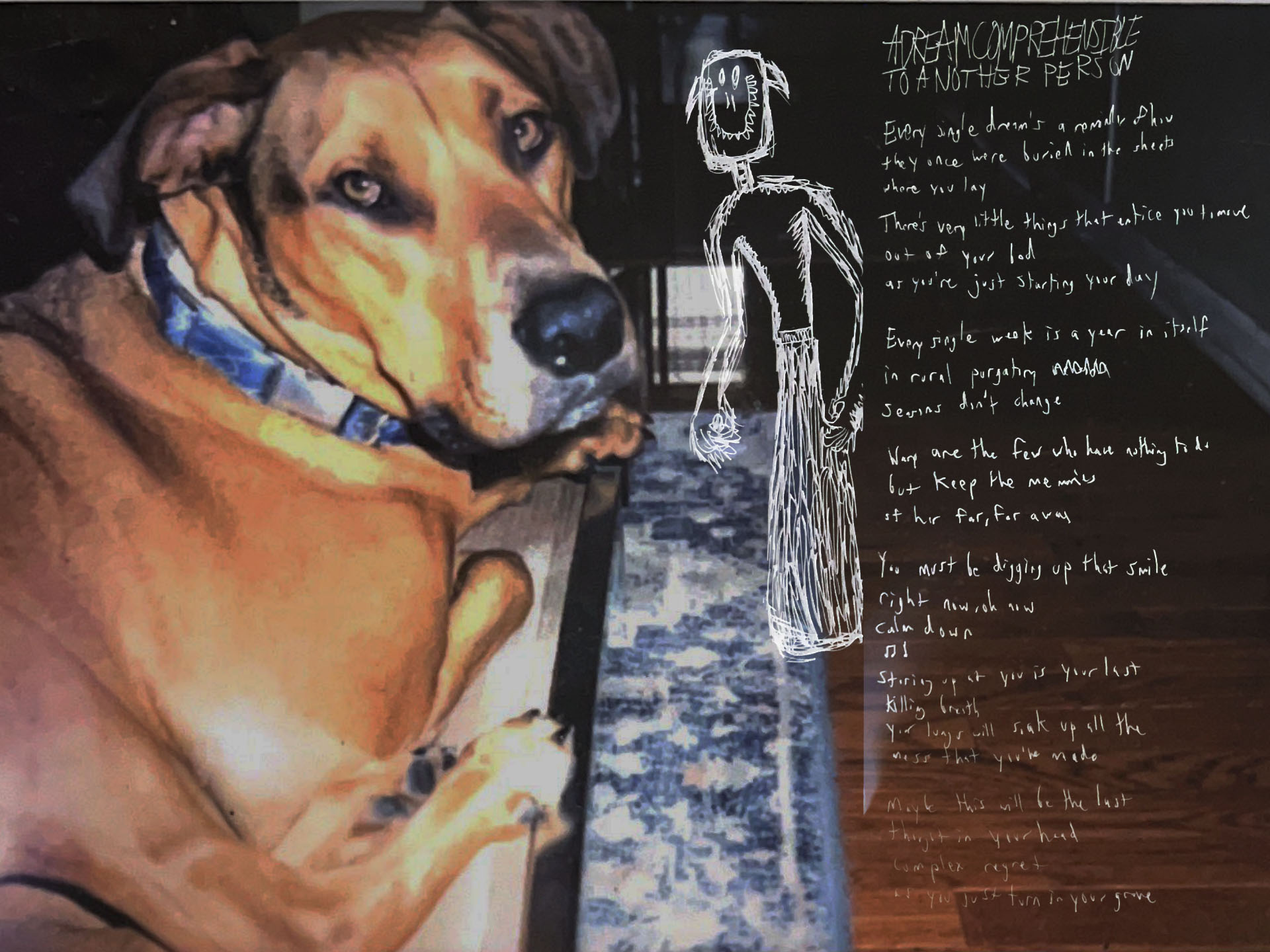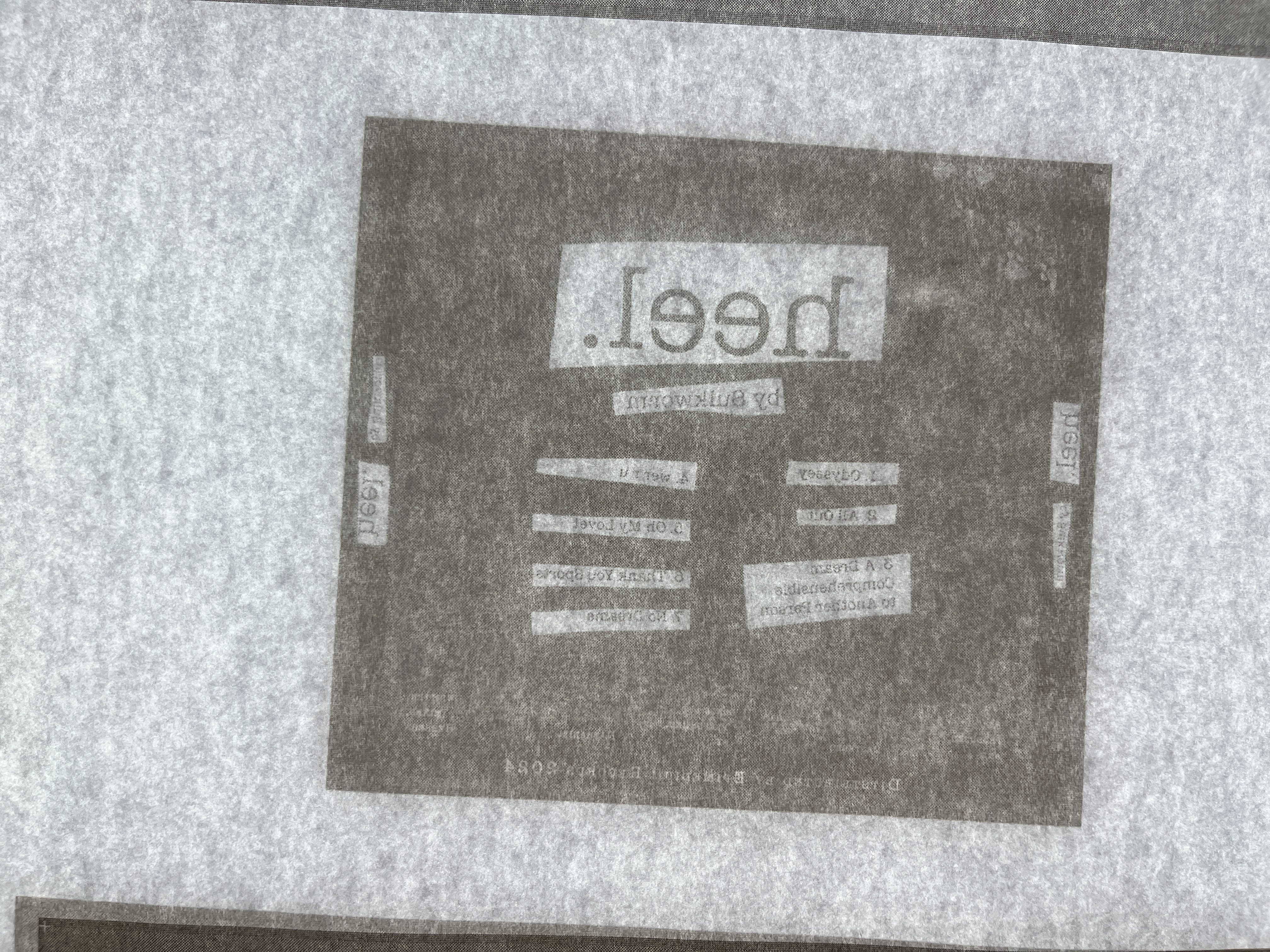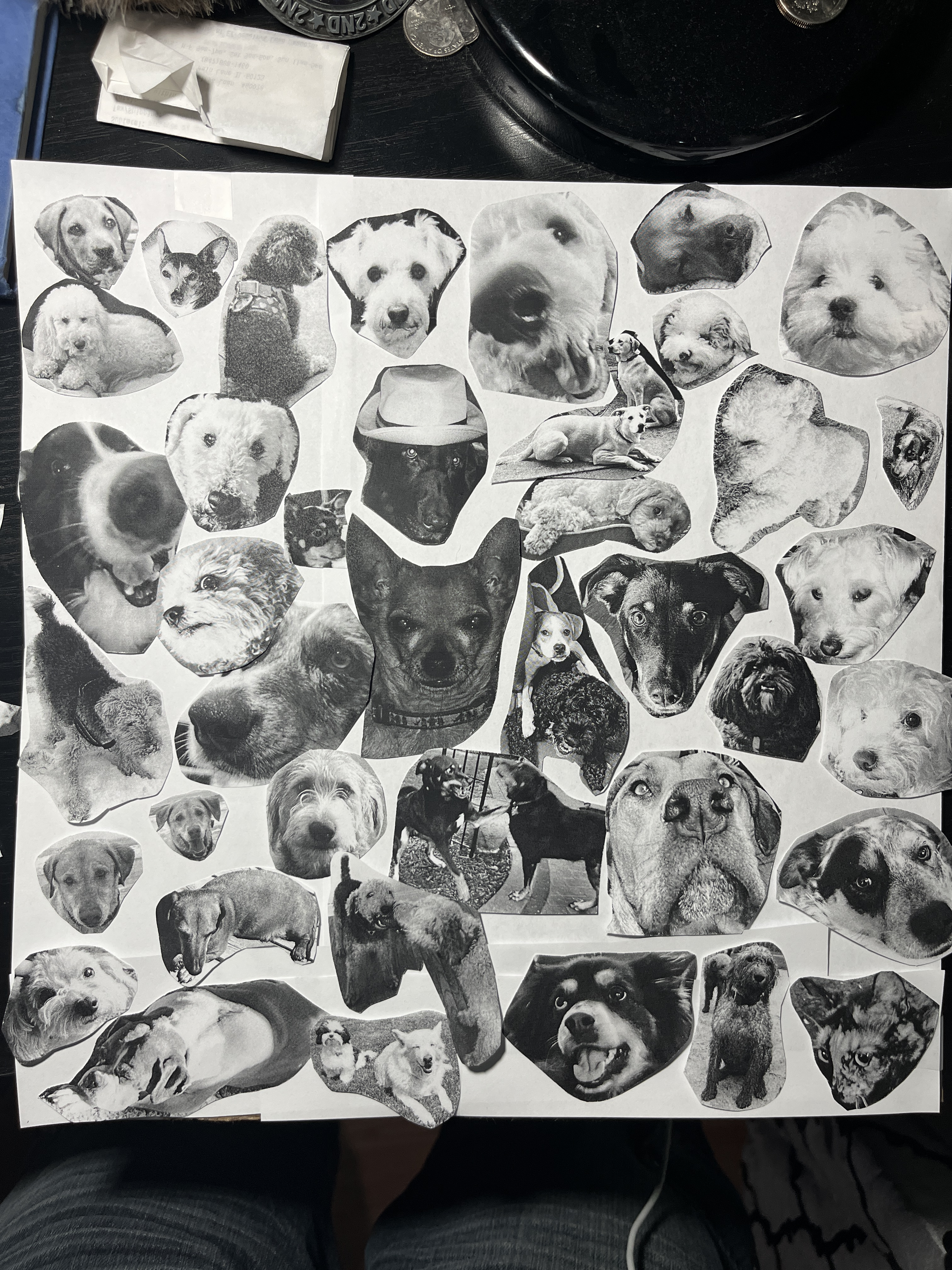 While designing the cover art I created a google form to collect pictures of people’s dogs and promoted it using physically printed material on our school’s risograph. This doubled as a way to promote the album via email/linktr.ee and also collect personal photos of dogs for use on the cover.