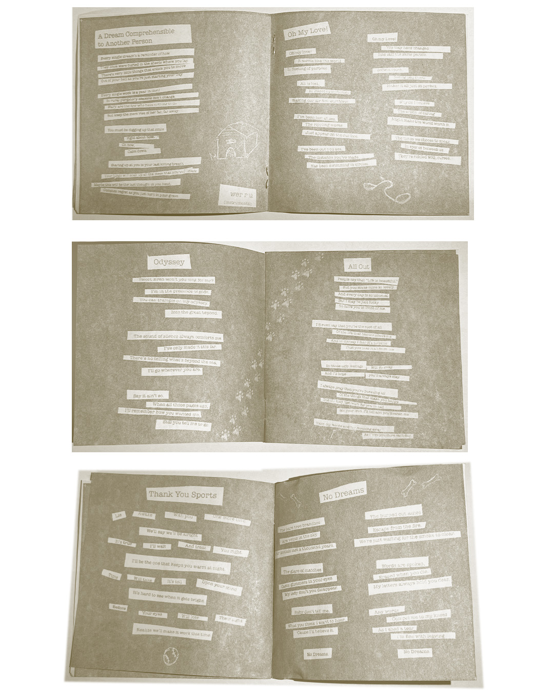 I released a two song EP called “folly” to build anticipation for the album and also to get people acclimated with the new direction I wanted to go with my music. I created visuals to have a handmade and personal feel by using my own handwriting, drawings and physically altering then scanning the photos for the cover.