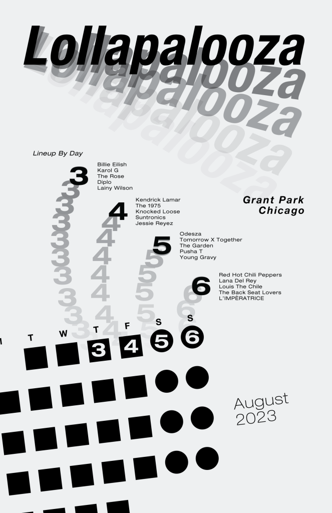 Lollapalooza calendar posters made for Typography 1.